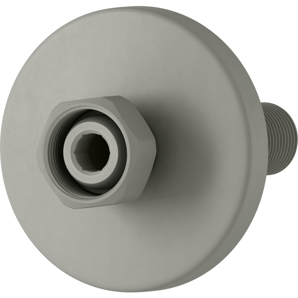 Blandarfäste i mässing med täckbricka. M26-G15 invändig/utvändig gänga. Ansluts i väggbox.