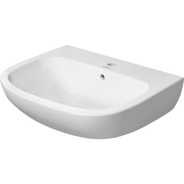 Duravit D-Code Tvättställ 600 mm Vit Högblank, Armaturhålsplattform, Antal hål för armatur: 1, Bräddavlopp - 23106000002