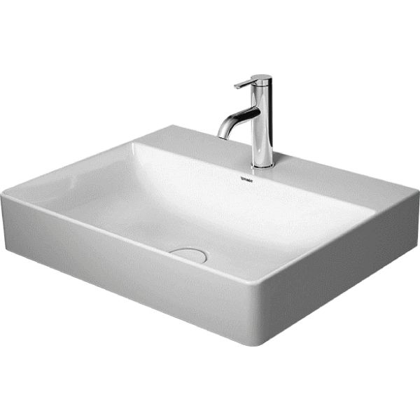 Tvättställ Durasquare 600x470 mm, utan breddavlopp och utan blandarhål, bultupphänges.