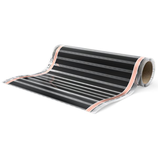 Värmefolie för golvvärme till trägolv, laminatgolv och plastmatta. Folien får endast förläggas i torra utrymmen. Säljs på löpmeter.