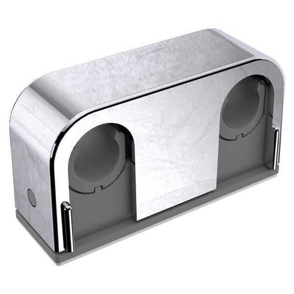 Art.nr: 2812943Grå/förkromad dubbelklammer för limning som passar rör med 12/15/16 mm Dy. Har ett C/C-avstånd på 40 mm. För montering i våtzon.