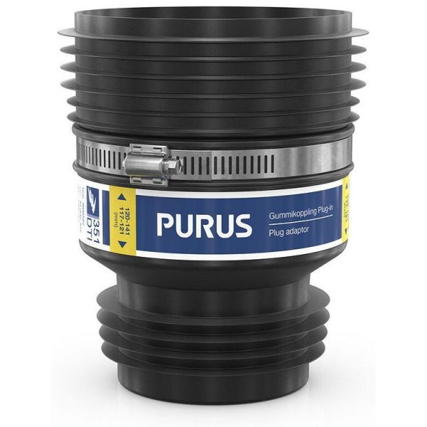 Gummikoppling i Plug-in-utförande som används för att ansluta två spillvattenrör med samma dimension samt spillvattenrör med samma eller olika material och ytstruktur. Gummikoppling Plug-in passar för vertikal och horisontell installation. Viktigt är att man beaktar flödesriktningen. En sida är med slangklämma för utvändig installation och en sida är för invändig installation på spillvattenrör. Gummikoppling Plug-in är enkel att montera på några minuter och är godkänd för dold förläggning.
