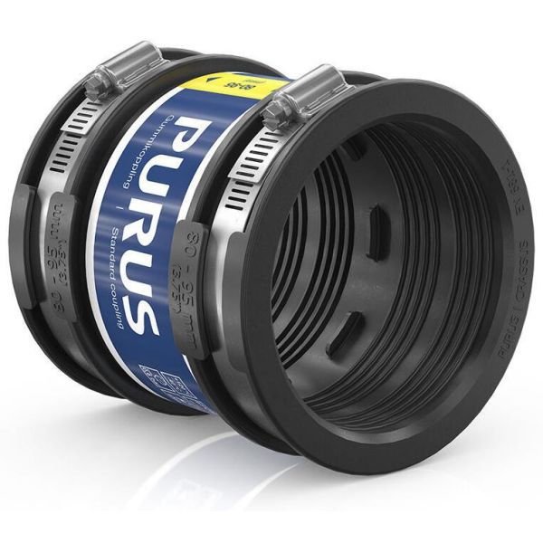 Gummikoppling från Purus som används för att ansluta två spillvattenrör med samma dimensioner samt spillvattenrör med samma eller olika material och ytstruktur. Gummikopplingen har två sidor försedda med slangklämmor för utvändig installation på spillvattenrör, som är enkel att montera på några minuter. Gummikopplingen passar både vertikal och horisontell installation och är godkänd för dold förläggning.