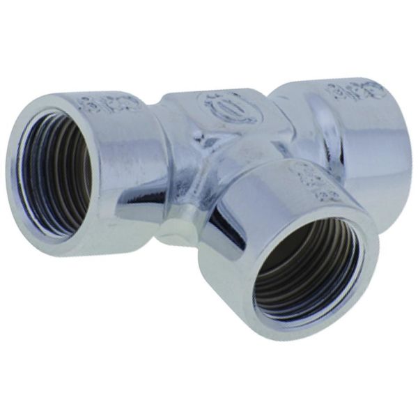 Art.nr: 2362797T-koppling med invändiga G10-gängor för PEX-, koppar- och stålrör. Klarar temperaturer på upp till 120°C.