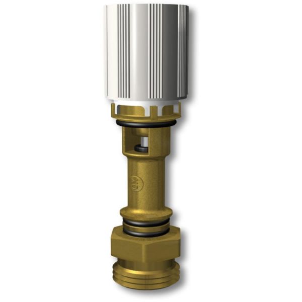 Returventil till LK Värmekretsfördelare VKF och VKF-i. Returventilen sitter på det nedre fördelarröret, normalt försett med ställdon.