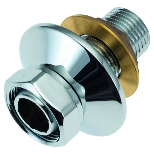 Art.nr: 3140136Anslutningskoppling med täckbricka i förkromad mässing M26x1,5i - G1/2u. För duschkabin.