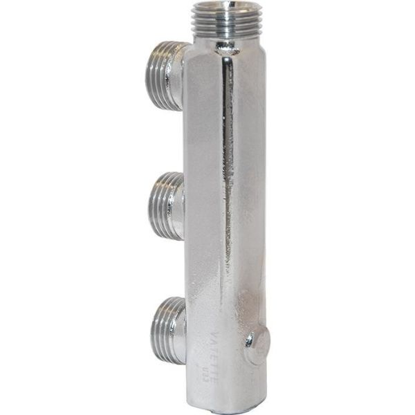 Vatette 1876982 är en 3-rörs 40 c/c badrumsfördelare för anslutning mot Vatette väggbrickor eller vägggenomföringssystem under tvättställ i badrum. Utrustad med G3/8-propp, en extra utanpåliggande anslutning till exempelvis WC.