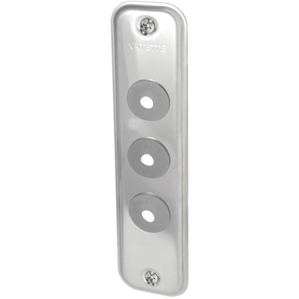 Vatette 8550625 en väggbricka för tre Ø 10-20 mm rör. Brickan är utrustad med rörtätning.