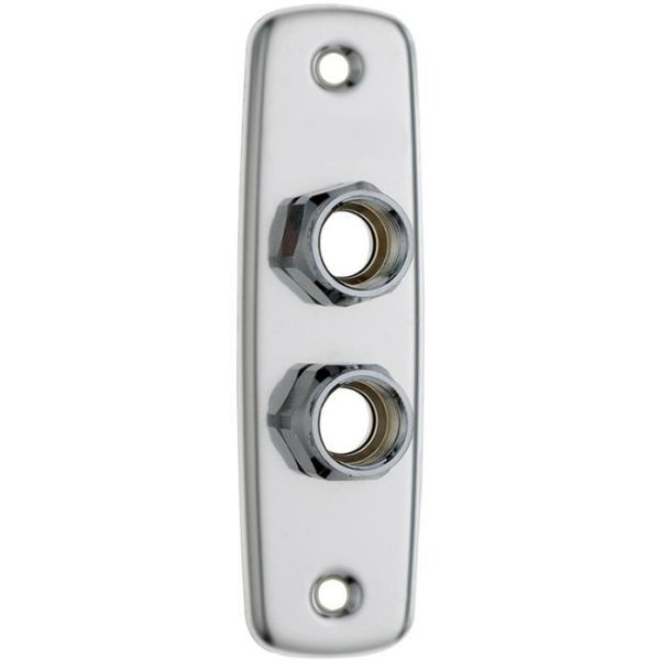 Art.nr: 2362869Rostfri väggbricka (2-håls) med blankpolerad yta och en invändig G15-gänga. För 15×2,5 Pex-rör. Brickans mått är 150 x 45 mm och skruvhålen har ett avstånd på 120 mm. Kopplingssats ingår.