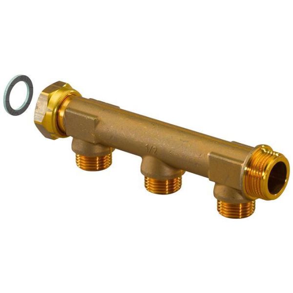 Art.nr: 2813313Fördelare med lekande mutter G¾ och utvändig gänga G¾ samt planpackning. Modellen har tre avgreningar och har centrumavstånd mellan avgreningarna 50 mm.
