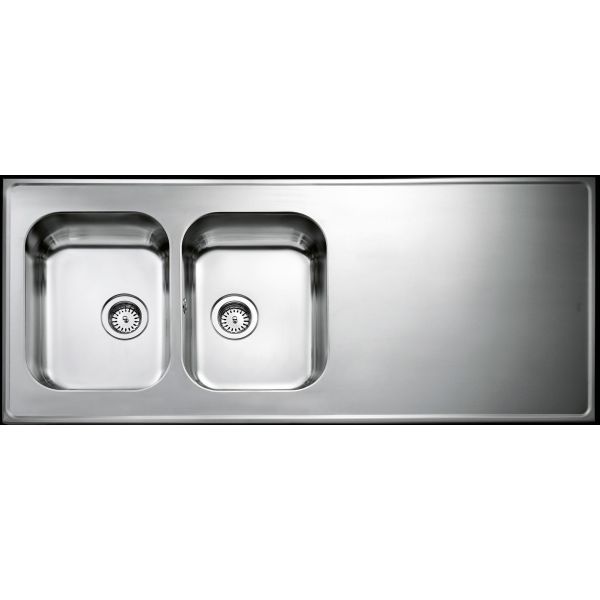 Vändbar heltäckande diskbänk med dubbla lådor. Levereras med korgventiler, bräddavlopp och vattenlås. Lådor: 339 x 436 x 160 mm. Yttermått: 1500 x 610 x 30 mm.