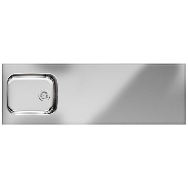 Diskbänk i 1,25 mm rostfritt stål. Levereras med diskho Iris 5040 med korgventil, placeras vid kant så modellen är vändbar. Underbyggd fukttrög spånskiva som är förberedd för kranhål Levereras komplett med vattenlås och korgventil..