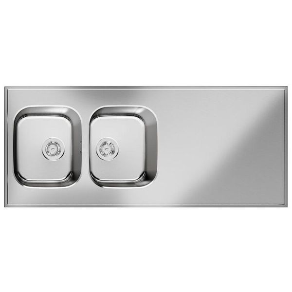 Diskbänk i 1,25 mm rostfritt stål. Levereras med diskho Iris 3434 med korgventil, placeras vid kant så modellen är vändbar. Underbyggd fukttrög spånskiva som är förberedd för kranhål Levereras komplett med vattenlås och korgventil..