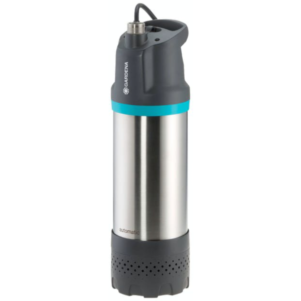 GARDENA 6100/5 Inox auto är en högkvalitativ, dränkbar 1100 W tryckpump som är den ultimata lösningen för alla behov av trädgårdsbevattning och sanitetsvatten i hemmet. Den här pumpen för brunnar och cisterner har högt tryck, är i stort sett helt ljudlös och lämpar sig perfekt för att pumpa vatten från stora djup. Med den dränkbara tryckpumpen 6100/5 kan du använda upp till fyra vattenspridare samtidigt, med upp till 6 100 l/h och ett tryck på 4,7 bar. Med den här kapaciteten står sig pumpen väl i förhållande till de flesta färskvattenpumpar. Den automatiska manometerbrytaren sparar både vatten och energi genom att slå på pumpen när vattnet behövs och automatiskt slå av den när inget vatten behövs. Den inbyggda backventilen gör vattnet tillgängligt omedelbart.