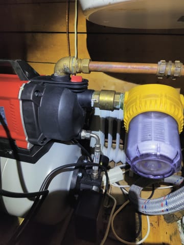 - Husvattenverket är utrustat med en tryckbrytare - via den här tryckbrytaren stängs pumpen automatiskt av resp. sätts på när det inställda trycket nås